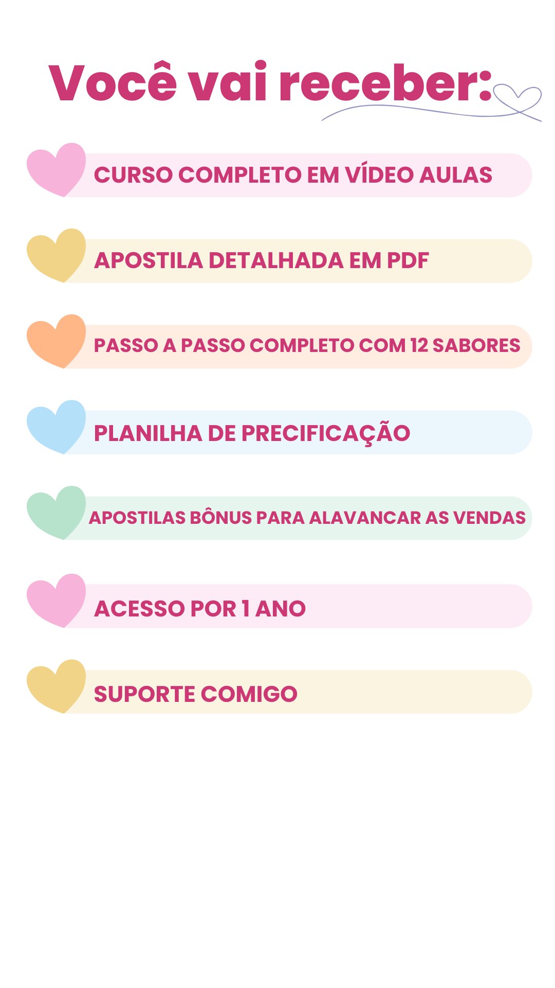 O curos ficará disponível durante 1 ano, exceto para as alunas que aderiram ao acesso vitalício